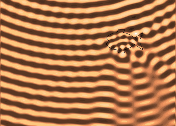 An acoustic wave is sent underwater to detect any obstacle like a fish (from simulated data). Photo Supplied by Dr Graff.