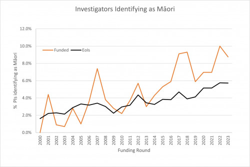 Figure 1: The percentage of responding Principal Investigators identifying as Māori in the Marsden Fund for the 2023 round.