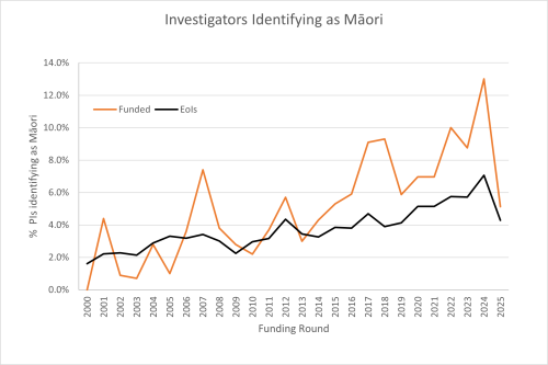 Figure 2: The percentage of responding Principal Investigators identifying as Māori in the Marsden Fund.
