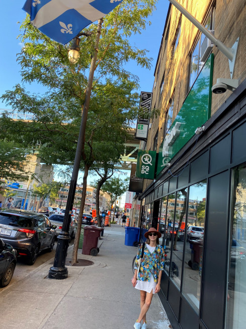 Dr Rychert during fieldwork in Quebec (Canada), in front of a government-run cannabis retail outlet (Société québécoise du cannabis), 2022. Photo: Supplied