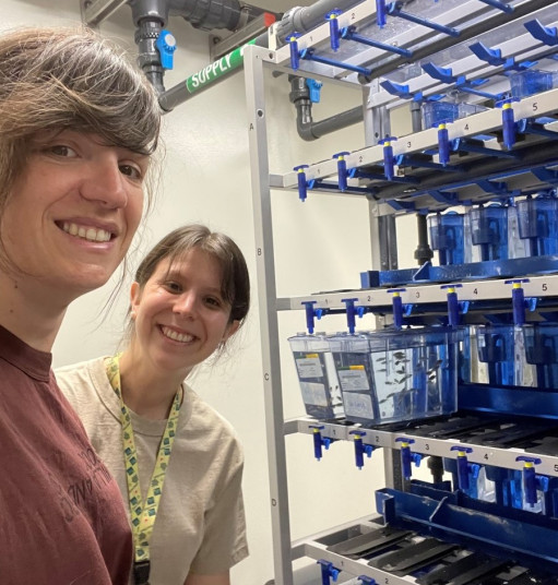 Dr Leask and Dr Mariana Urquiaga (Rheumatology Fellow @ University of Alabama at Birmingham) in the fish facility. Photo: Supplied