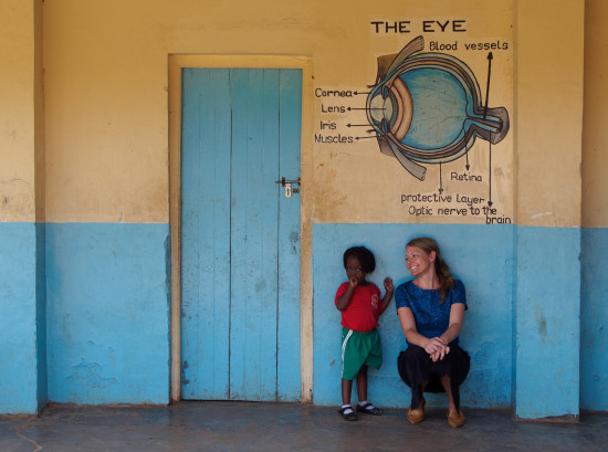 Dr Lisa Hamm during a quiet moment on a vision assessment day for children in Uganda. Photo: supplied.