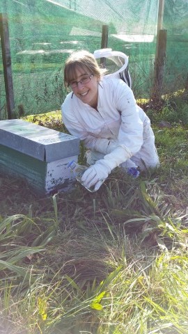 Greta also worked with Dr Mark Goodwin who was conducting a variety of trials. These included training bees with scented syrups and observing and recording orientation dances of bees to establish the impact of netting orchards.