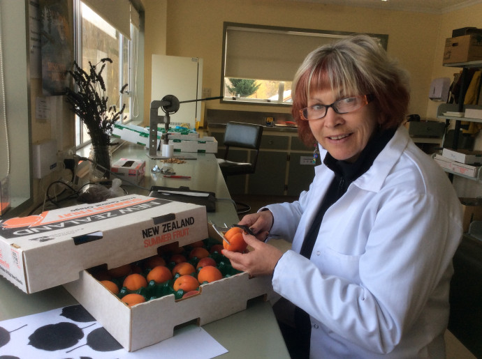 Sally was working with Arlene Nixon at the Plant and Food Research, Clyde, looking at how scientists use genetics to create an apricot that has all the right qualities for orchards and the market. She collected data on the potential cultivars describing plant details for potential patent work. This included looking carefully at 18 different characteristics of the fruit itself and then an even more detailed look at the tree and the leaves. The flower data will be collected later in the year. She cut budwood from promising selections, which will be propagated on root stocks. Fruit stones were dried and cracked to collect the seed kernels for further growing of different varieties of apricots.
