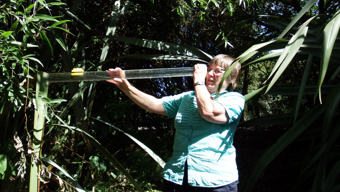 She found that as the water levels within the reserve started to get very low due to the extended dry period that Kapiti coast experienced this summer, the existing weir that had been used for flow rate measurements, was not able to give reliable data during this time. As the water through the weir became lower, the water was moving too slow to get a valid reading. At times, the water took upwards of 30 minutes to move through a distance that during high water levels took a matter of 30 seconds!