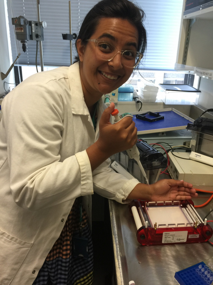 The laboratories in Sherna’s placement derive cell lines from clinics from which they produce immortal cell lines and model organisms. These are used to elucidate genetic codes and cancer pathways. Oncogenic proteins from the pathway are imaged so that compounds can be produced as potential drugs, specific to a type of cancer. Once the compounds are produced, they are tested on the cell lines and model organisms to determine whether they are able to kill the cancer. Drugs able to successfully kill cancers in cell lines and model organisms proceed to clinical trials, when the drugs are tested on humans. Cancer drugs, due to their toxic nature are tested on cancer patients, unlike other drugs, which are tested on healthy individuals. Most drugs produced do not make it to the shelves of a pharmacy. However, in science, the failures are also considered learning. Scientists learn what can be an effective drug, as well as what cannot be an effective drug.