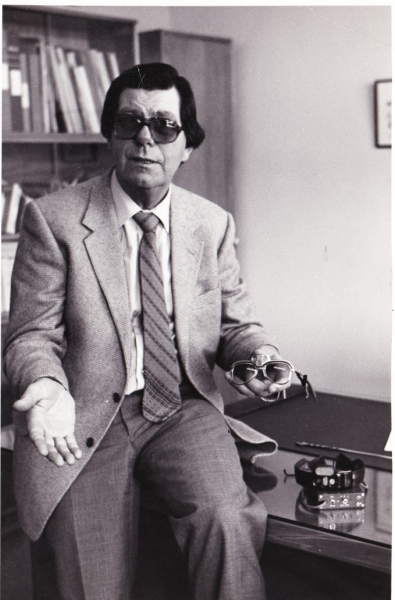 Initially in Birmingham he continued his research in underwater ultrasonic technology but after seeing blind children learning to swim and hitting their heads he started to think about how blind people navigate, and realised they need technology to enable them to navigate safely on land as well. He decided to investigate air sonar which had not yet been developed but which had been used for millions of years by bats. He enlisted the help of his daughter to catch bats in mist nets under old schools or in bell towers. These were horseshoe bats which use ultrasound as they fly at night and navigate caves and dark places without being able to see. The following day he would record them in a blacked-out room strung with fine wires. That night they were returned to their roosts. Using these sound patterns he designed transducers which formed the basis of a device to help blind people navigate independently. In 1965 he was awarded the inaugural National Annual Achievement Award by the Worshipful Company of Scientific Instrument Makers.