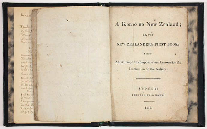 Kendall, T. A Korao [kōrero] no New Zealand; or the New Zealander’s first book; being an attempt to compose some lessons for the instruction of the natives. Sydney, Australia: G. Howe, 1815.