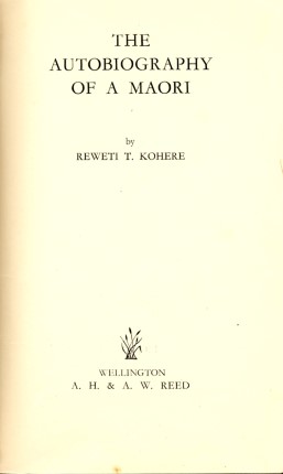 Kohere, R. T. The Autobiography of a Maori. Wellington: A. H. & A. W. Reed, 1951.