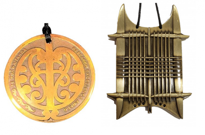 Te Puāwaitanga Research Excellence Award and Te Rangaunua Hiranga Māori Award have had new medals designed for them by artist Ross Hemera, former Professor of Māori Art and Design at Massey University.