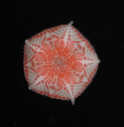 This stunning specimen photographed onboard NIWA’s R/V Tangaroa in 2012 was collected on the Colville Ridge north of New Zealand and is only the second ever collected of this species. The animal is ~ 1cm across its disc.