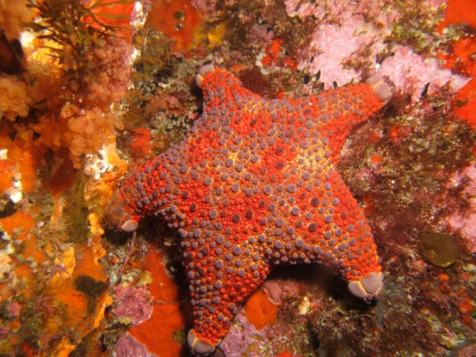 Firebrick sea star. Image credit: Rob Stewart, NIWA. Ocean Survey 20/20 Bay of Islands Coastal Biodiversity, Sediment and Seabed Habitat Project, funded by Land Information New Zealand.
