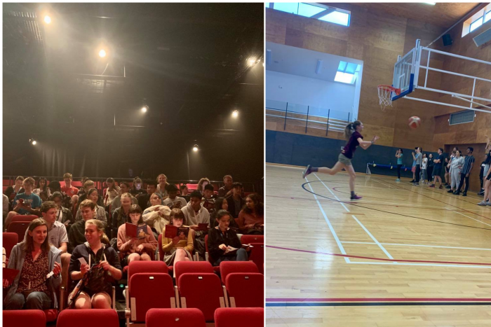 Cinderella Pantomime (left) and basketball drills (right)