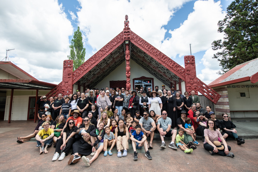Tāngata gathered for the hura pou, Moko Marae. Image: Marcos Mortensen Steagall