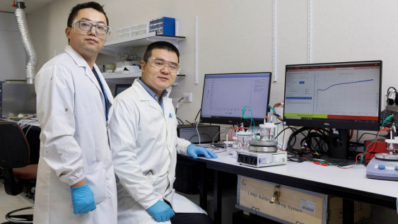 The experiments used a proton exchange membrane electrolyser. Carbon dioxide flowed into an electrochemical cell and was converted into formic acid, just like charging a battery. Two PhD students, Chengyi Zhang and Ruihu Lu, and a research fellow, Dr Yu Mao, worked on the project.