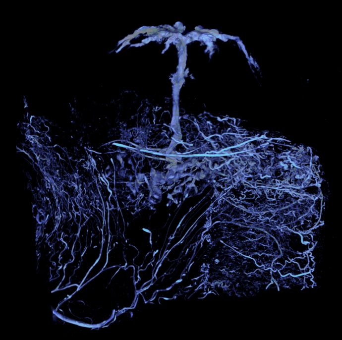 Working with researchers in the UK, Australia and New Zealand, Clark and James are bringing together the latest advances in physiology, bioengineering and computer modelling to develop the virtual uterus. Clark and her colleagues will reconstruct for human pregnancy structures similar to those shown in the trio of images above. At left is an image of the blood vessel network of a rodent uterus captured by micro CT, a technique similar to a CAT scan but of much higher-resolution. Nutrient-rich blood is transported to the placenta, which appears as the ‘tree-like’ structure at the top of the image. While micro CT is powerful, it does not allow researchers to study the function or interaction of individual vessels. Precise 3D details can be extracted using computer-based analysis. Here, the researchers reveal arteries feeding a single placenta, the organ feeding the fetus (middle). These precise details (right) are then used to recreate a ‘virtual’ uterus where the team can begin to test ideas about function and dysfunction.