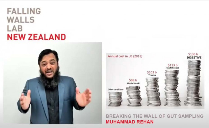 Rehan was selected from applicants from New Zealand who presented their innovative ideas at an online Falling Walls Lab New Zealand event held by Royal Society Te Apārangi this week, with support from German Embassy in Wellington, the Ministry of Business, Innovation and Employment Catalyst: Leaders Fund and EURAXESS Australia & New Zealand.