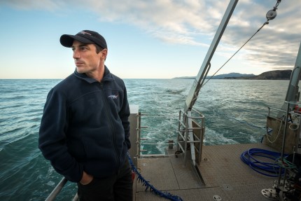 Dr Joshu Mountjoy on RV Ikatere. Tsunami hazard project off Kaikoura. Photo by Dave Allen