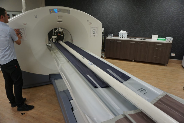 Sediment core being imaged by CT scanner (image by Nic Ross, provided).
