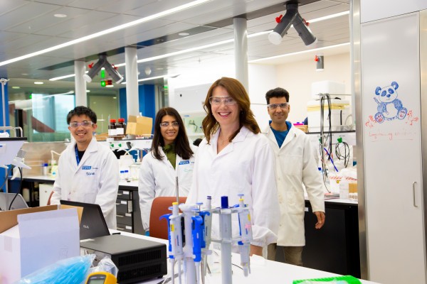 Professor Jadranka Travas-Sejdic with Associate Investigator Dr Eddie Chan on the far left and other members of the research team. Photo supplied