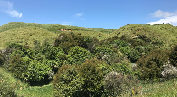 Haparangi A2 - Wā rangahau of Ahorangi Hinematau McNeill's PhD tauira. The first, that they are aware of, with Māori Land Court authorisation (2021) to establish a natural burial urupā on their whenua. Whakaahua supplied.
