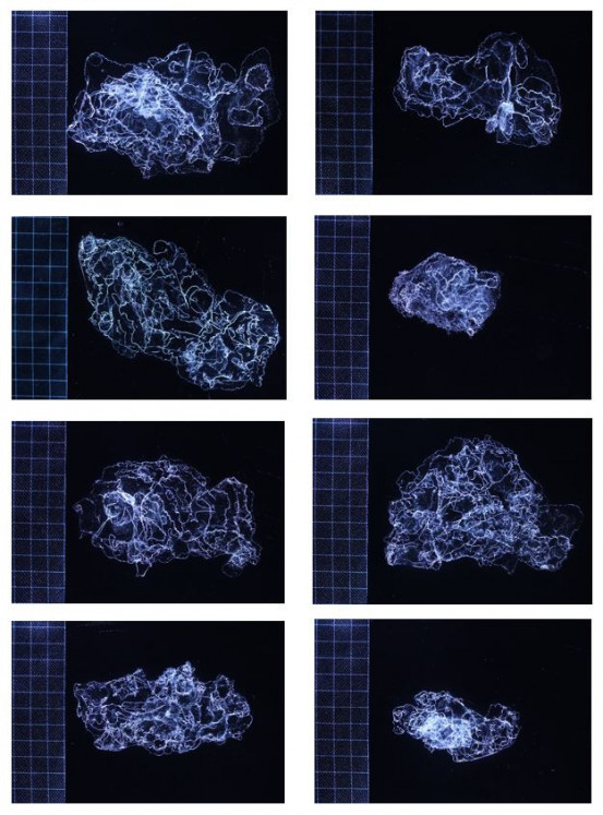 Examples of the scaled images of individual platelet crystals captured by artist Gabby O’Connor