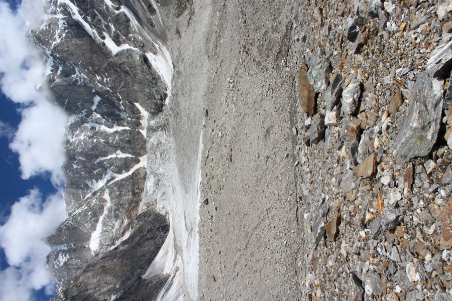 Debris-covered Satopanth bamak (glacier) in the Garhwal Himalaya, India. Dr Winter-Billington will compare observations of Satopanth, a glacier in Nepal, and Haupapa Tasman Glacier in Aoraki Mt Cook National Park, to improve understanding of the regional variability of the underlying processes of surface melting on debris-covered glaciers (photo supplied).