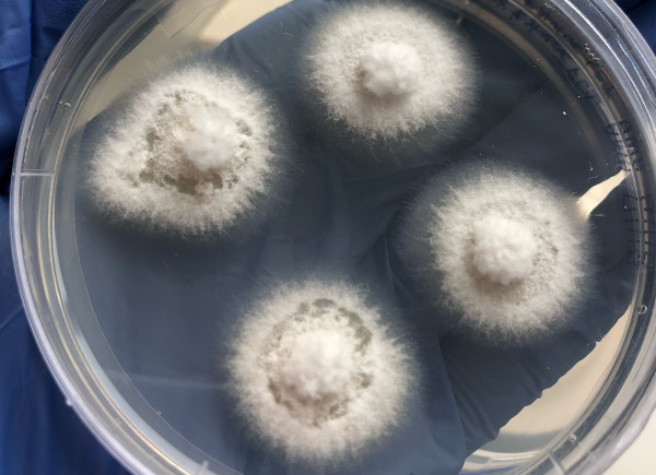 Fungal mycelia growing on an agar plate (photo supplied).