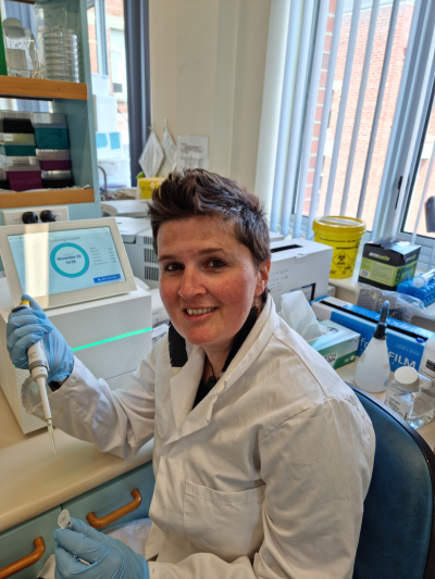 Dr Alana Alexander pipetting cetacean DNA. Photo supplied.