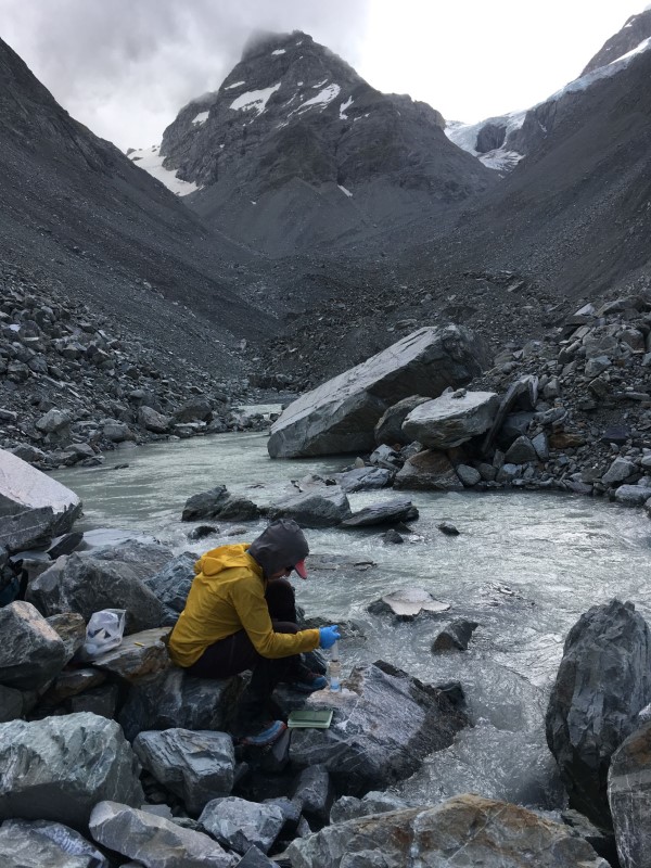Sampling meltwaters in the Rangitata River headwaters, New Zealand (Credit: Christian Martin)