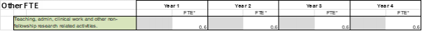 If you are planning to work less than 0.8 FTE (minimum 0.4 FTE) on your fellowship, how you prepare your budget depends on what you are doing with the other FTE.