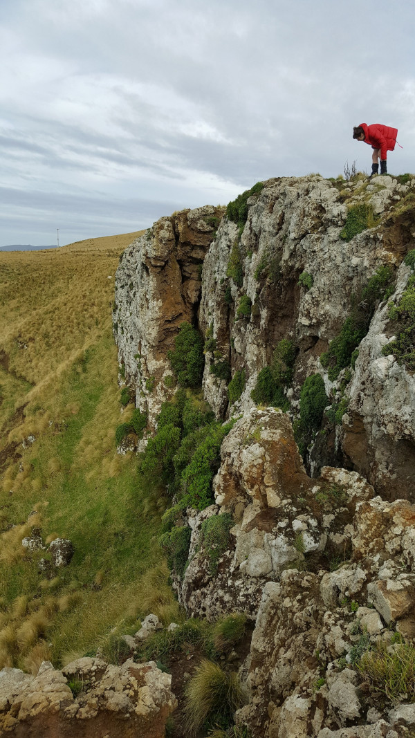Dr Jessica Prebble at Cape Saunders on the Otago Peninsula looking for native plants. Credit: Kerry Ford.