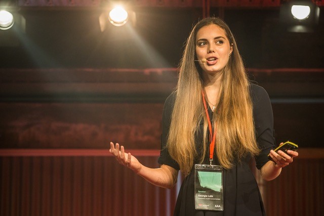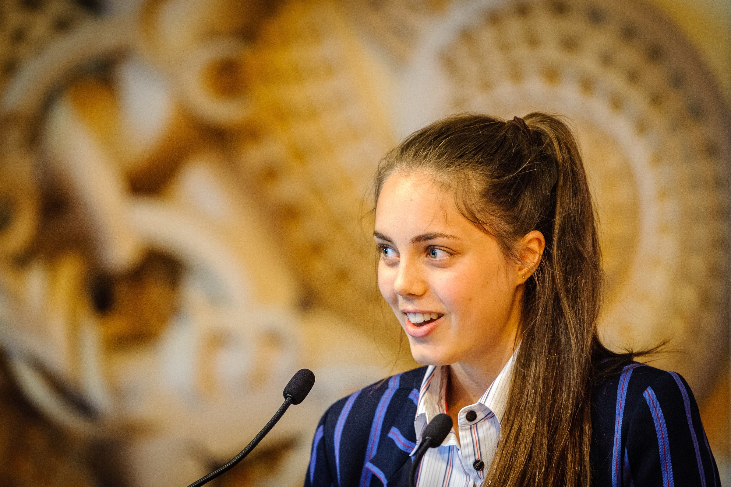 Georgia giving her acceptance speech after winning the 2015 Prime Minister's Future Scientist Prize