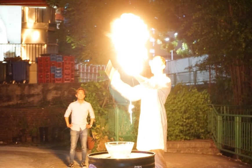 I have also presented science to the public and in schools for the UNESCO Year of Light, demonstrating how dyes block out certain colours, we prepared different coloured jellies that the kids were very happy to eat at the end of the lesson. I have also been involved in a group that brings together some of New Zealand’s top researchers in human evolution, superconductors and conservation to present a complementary view of science and faith. Finally, everyone likes a good fireball. Last year I gave a talk at a pub for the Pint of Science event in Singapore, ending the talk with a bang.
