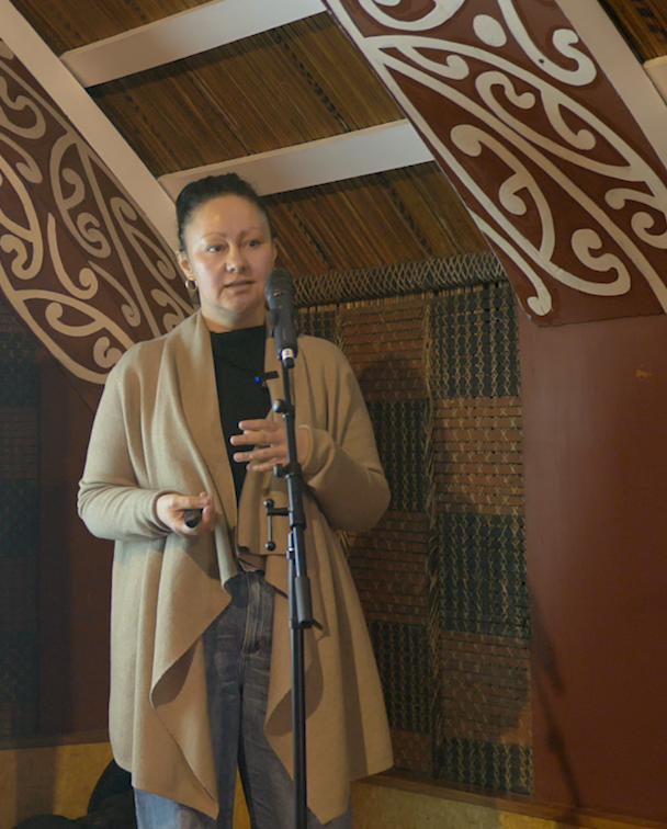 Dr Kim Southey presenting at the He pounga waihoe nā ō mātua symposium, Te Atawhai o te Ao (Independent Māori Institute for Environment and Health; photo supplied)