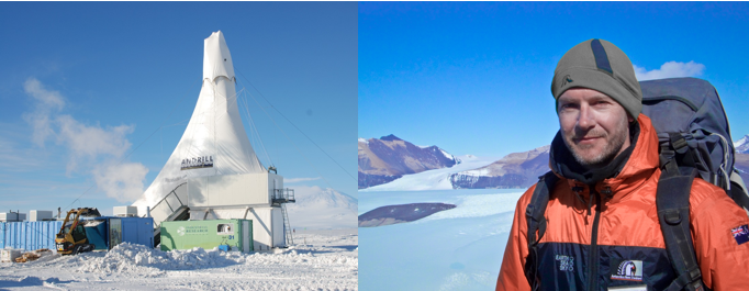 Left: ANDRILL station, image supplied by Associate Professor Christina Riesselman. Right: Professor Nick Golledge.