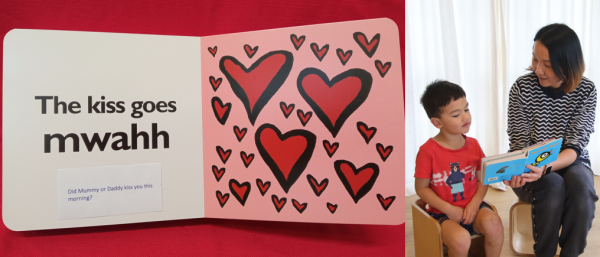 (L) Example of a noisy book used in the studies (R) research associate Dr Yan Chen with her son (an attendee of a BestStart ENRICH centre).