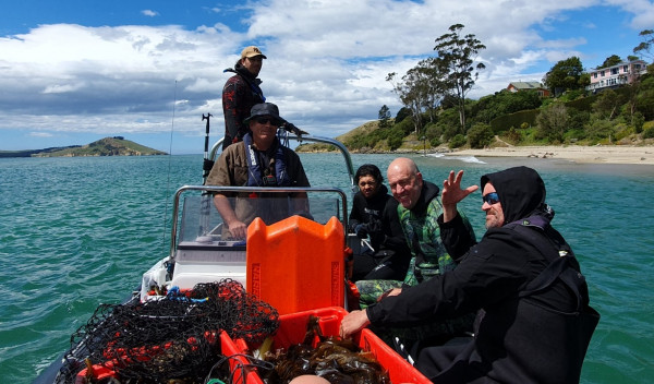 The Ngāi Tahu dive team, sampling pāua in Karitane for this project (photo supplied).